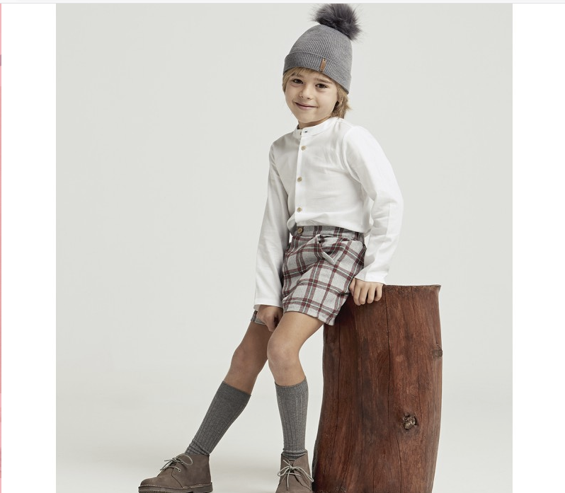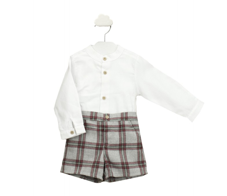 Conjunto pantalón corto de cuadros más camisa lisa de Cuello Mao.